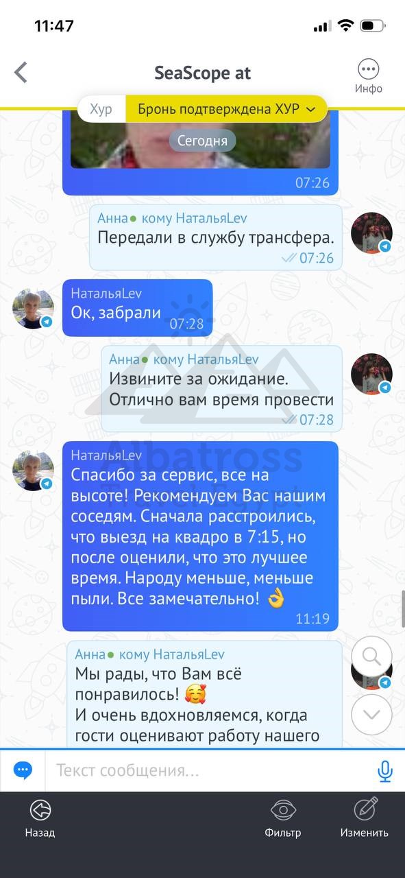 Если во время экскурсии возникают вопросы, можно сразу написать нам — мы оперативно свяжемся с организаторами для их решения. При отсутствии мобильного интернета можно попросить его у сотрудников или других туристов. Как видно из переписки, в ходе поездки и после неё в наш отдел бронирования обращений не поступало. Если Вам показалось, что времени на полёт было недостаточно, можно было оперативно сообщить нам об этом — так же, как и в случае задержки трансфера.