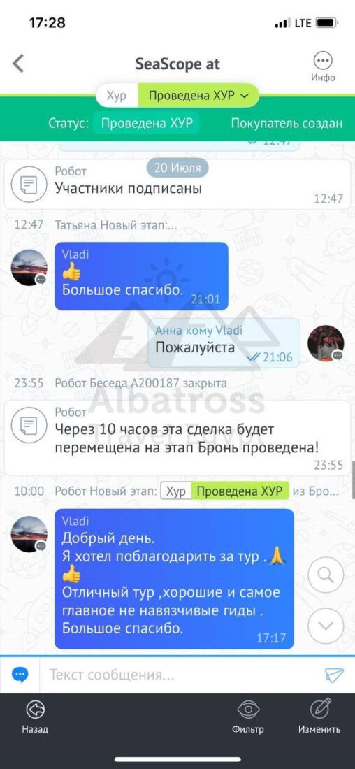 Если во время экскурсии возникают вопросы, можно сразу написать нам — мы оперативно свяжемся с организаторами для их решения. При отсутствии мобильного интернета можно попросить его у сотрудников или других туристов. Как видно из переписки, в ходе поездки и после неё в наш отдел бронирования обращений не поступало. Если Вам показалось, что времени на полёт было недостаточно, можно было оперативно сообщить нам об этом — так же, как и в случае задержки трансфера.