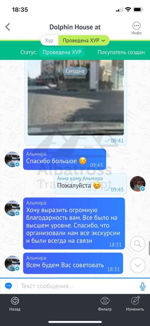 Хочу выразить огромную благодарность вам. Все было на высшем уровне. Спасибо, что организовали нам все экскурсии и были всегда на связи