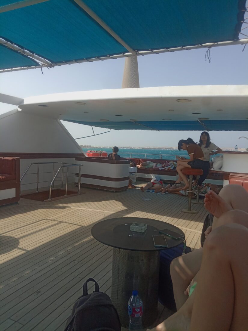 Вся экскурсия заняла 10 часов (от отеля к отелю). Из них 2,5 часа на яхте туда и 2,5 часа обратно. Возможно, нам не повезло с яхтой. Она подходит для коротких прогулок или каких-то мероприятий. Но когда тебя 2,5 часа качает и хочется не то, чтобы прилечь, но удобно сидеть, это не получится. На яхте был только узкий диван по периметру. Многие туристы пытались как-то согнувшись прилечь, некоторые ложились прямо на пол на полотенца. И вот нам повезло! Мы увидели дельфинов! Их было много и долго! С других яхт туристы дружно по команде прыгали прямо к ним в стаю. Мы были в ожидании, когда же и нам скажут надеть маски. Но увы! Когда я спросила, почему мы не плаваем с дельфинами, сказали, что ветрено и яхту качает. И мы с завистью наблюдали за такими же яхтами, которые видимо «не качало и на которые «не дул» ветер. Потом были две остановки на рифах. Второй был наполовину мёртвый. Но и тут оказалось, что плавать можно только в группе рядом с гидом! К команде претензий нет. Они старались и соблюдали безопасность. Стоит ли это 20$? Да. Стоит ли это 10 часов, из которых 5 часов на неудобном диване и 15 минут снорклинга? Точно нет! И в конце был последний штрих к экскурсии, когда двое из команды походили к каждому туристу, один просил заполнить бланк с отзывами, второй держал открытой банку для чаевых, внимание! для всего экипажа! У меня было несколько купюр по 1$ и когда я стала доставать их, мне сказали, что для экипажа это мало. Ну, извините…