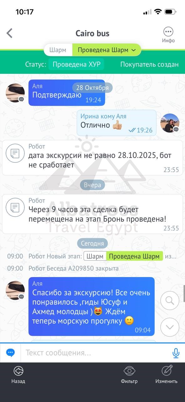 Доброе утро) мы вернулись вчера с Каира) нам безумно понравилось) спасибо Вам!