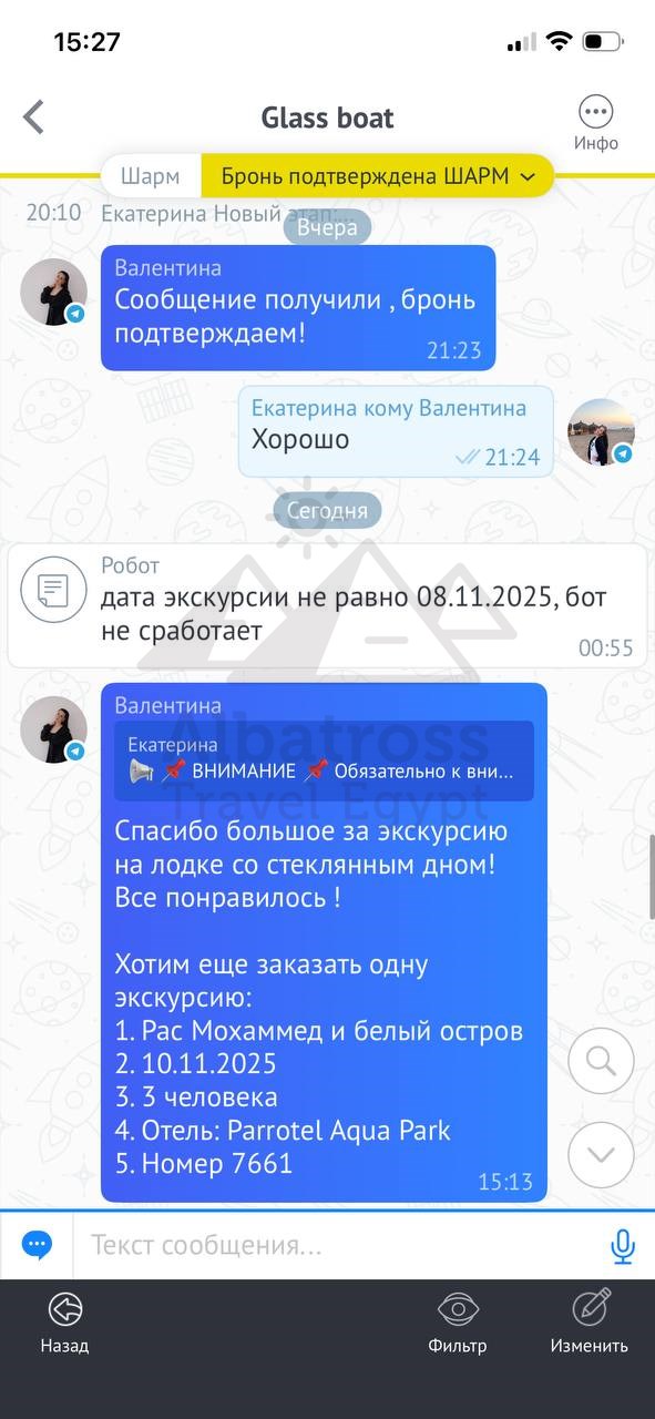 Спасибо большое за экскурсию на лодке со стеклянным дном! Все понравилось !