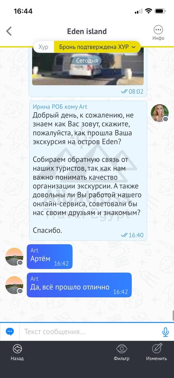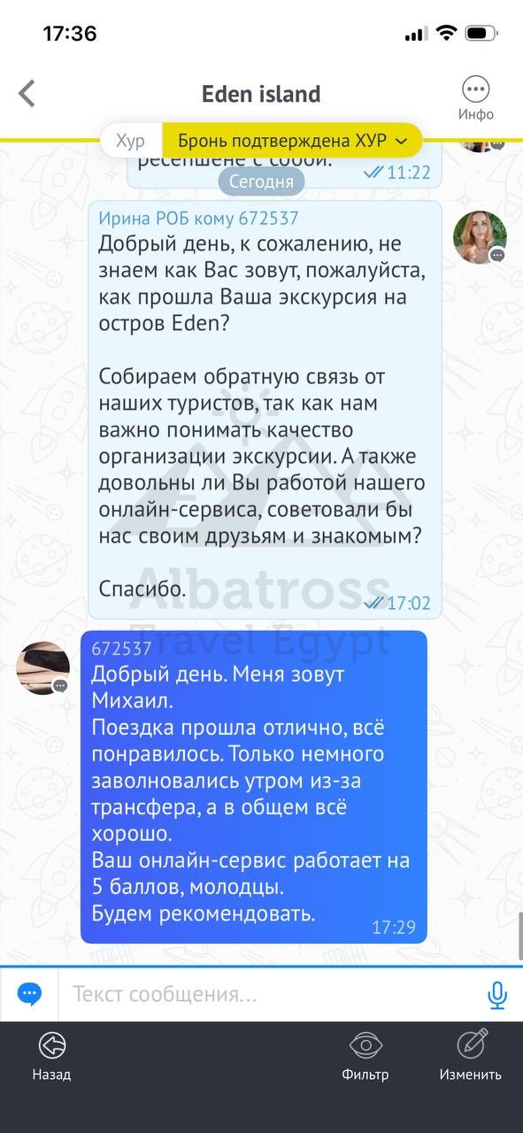 Поездка прошла отлично, всё понравилось. Только немного заволновались утром из-за трансфера, а в общем всё хорошо.