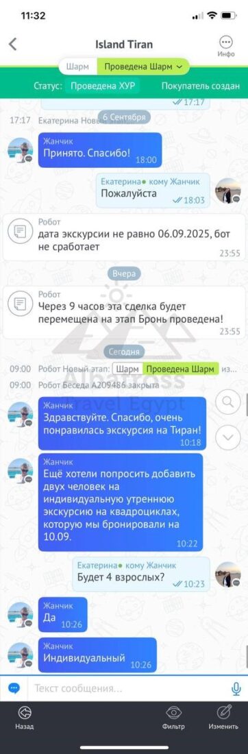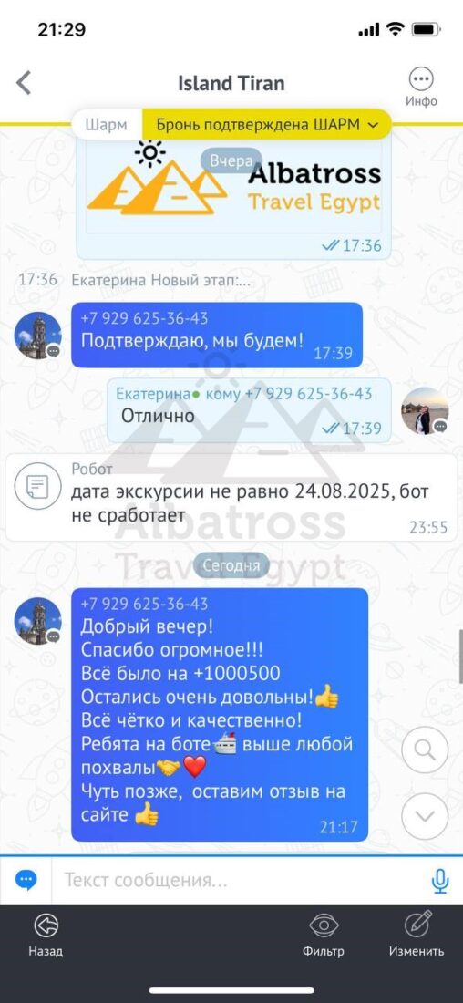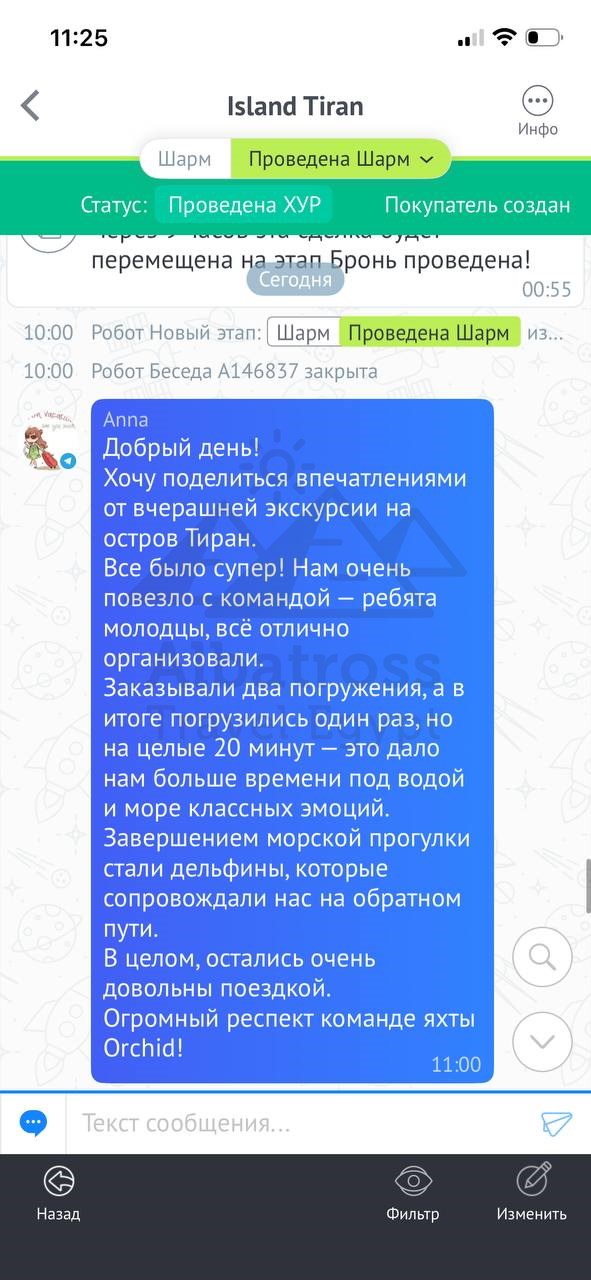 Добрый день! Хотели поблагодарить за вчерашнюю экскурсию, все прошло хорошо, на яхте была очень чуткая, добрая и понимающая команда.