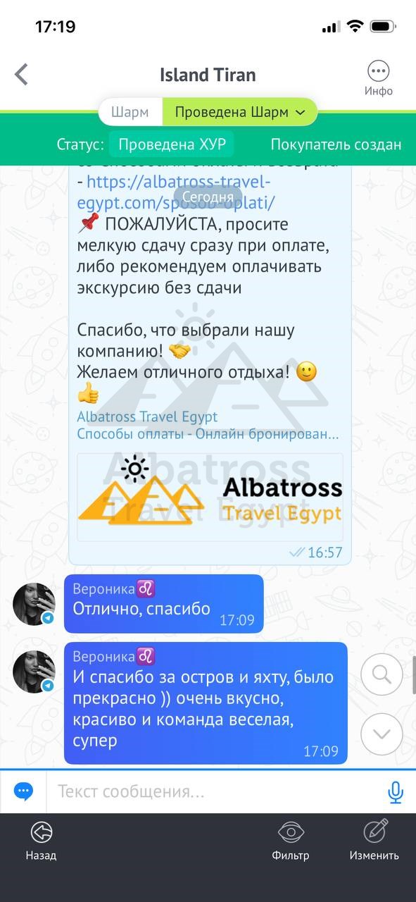 Вчера ездили на остров Тиран. Это было супер! Спасибо вам за предоставленное удовольствие!