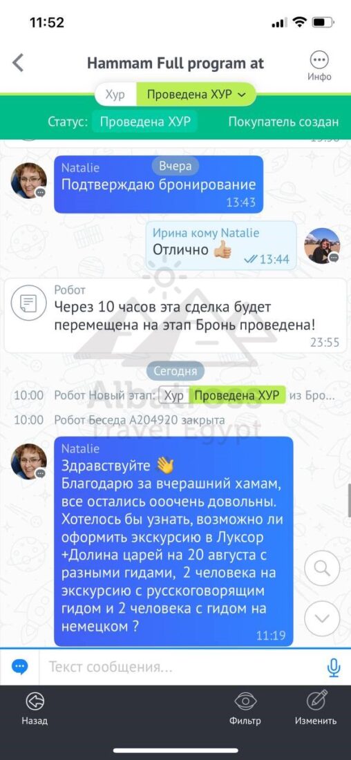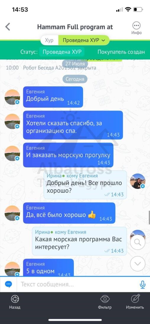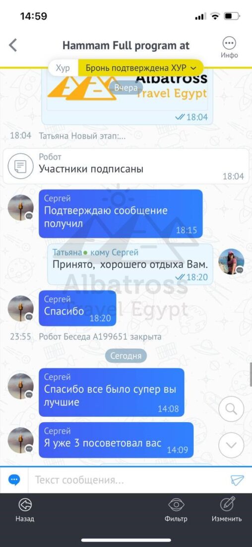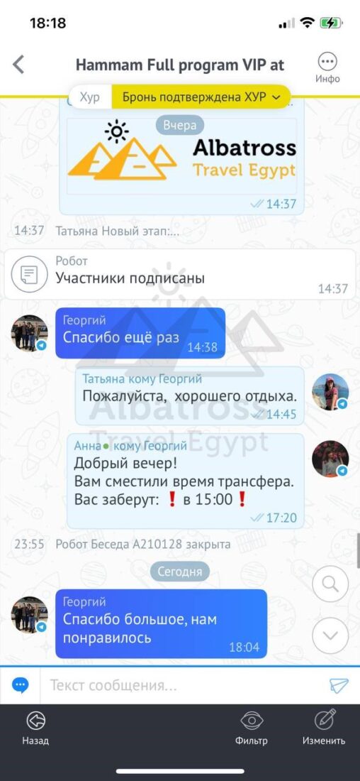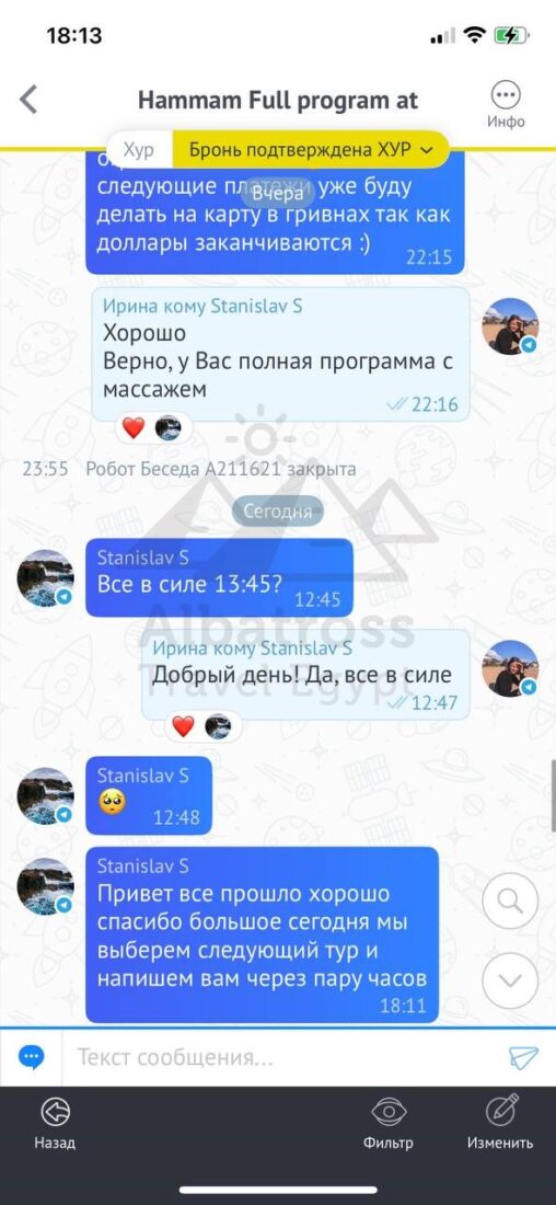 Привет все прошло хорошо спасибо большое сегодня мы выберем следующий тур и напишем вам через пару часов