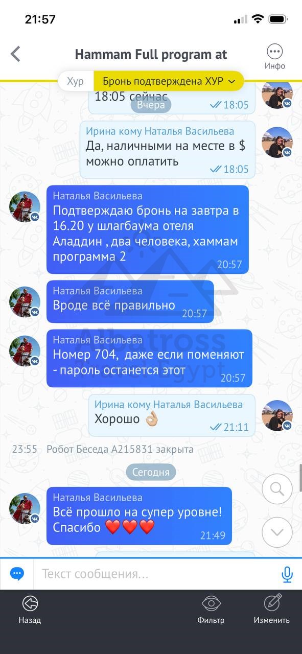Благодарю за вчерашний хамам, все остались ооочень довольны.