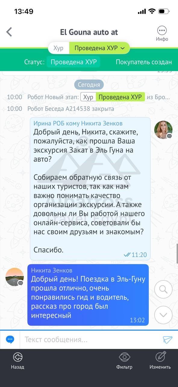 «Добрый день! Поездка в Эль-Гуну прошла отлично, очень понравились гид и водитель, рассказ про город был интересный».